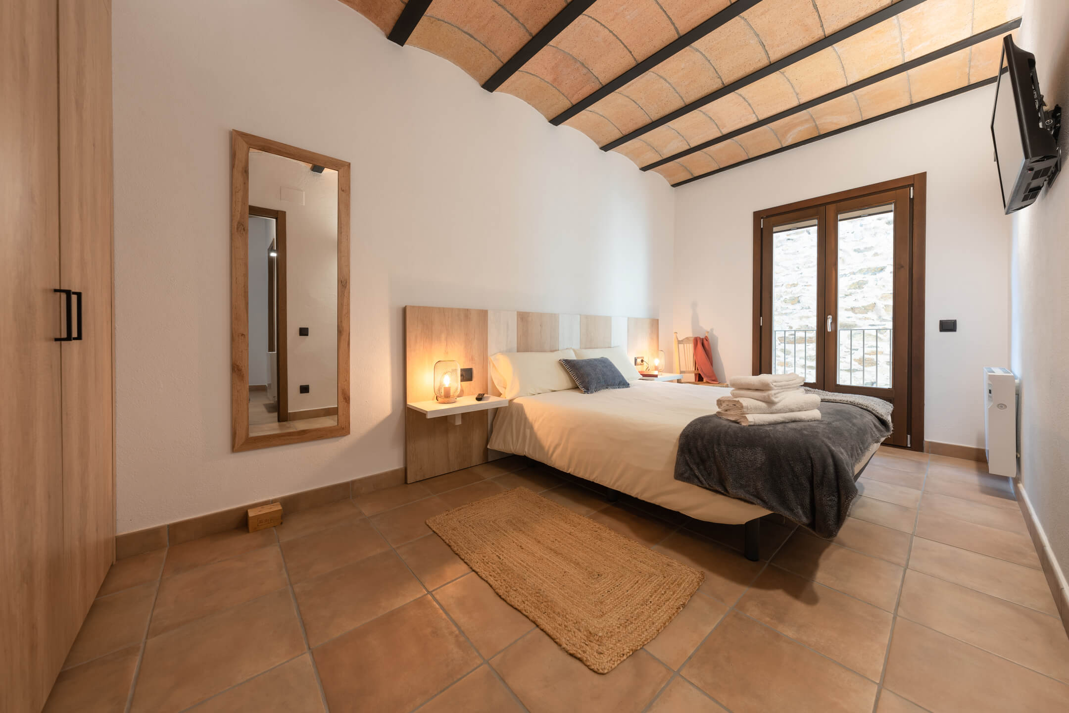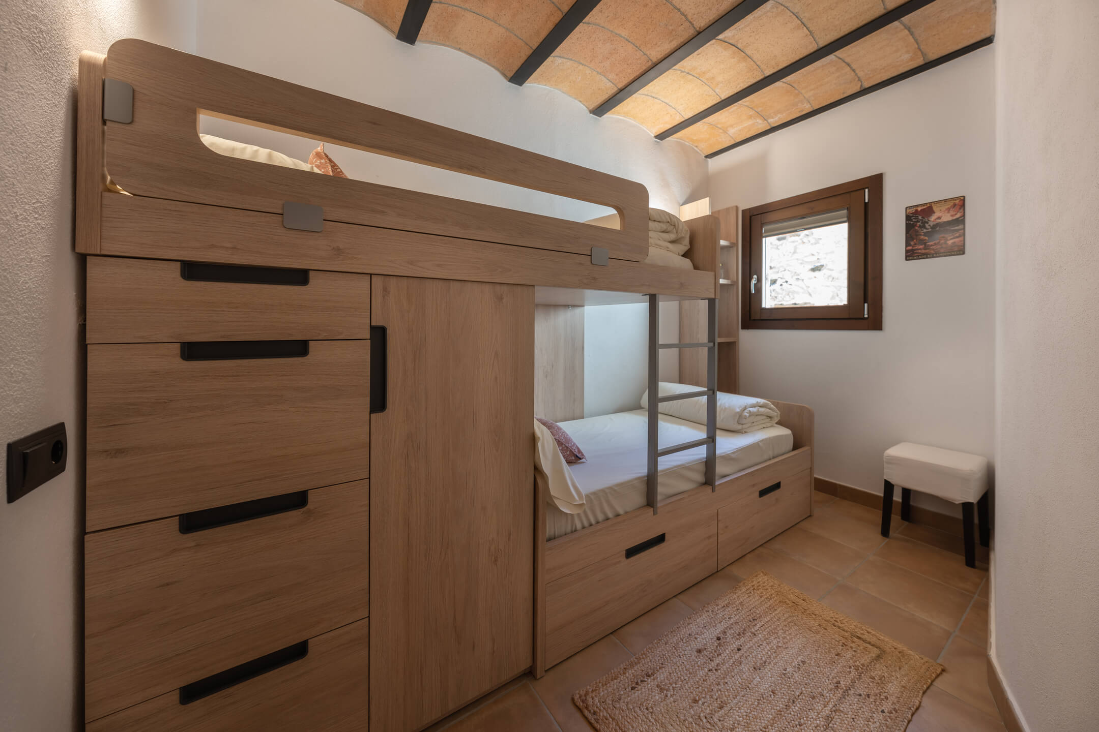 Disposa d’una habitació amb llit de matrimoni i una altra amb 2 llits, format llitera.