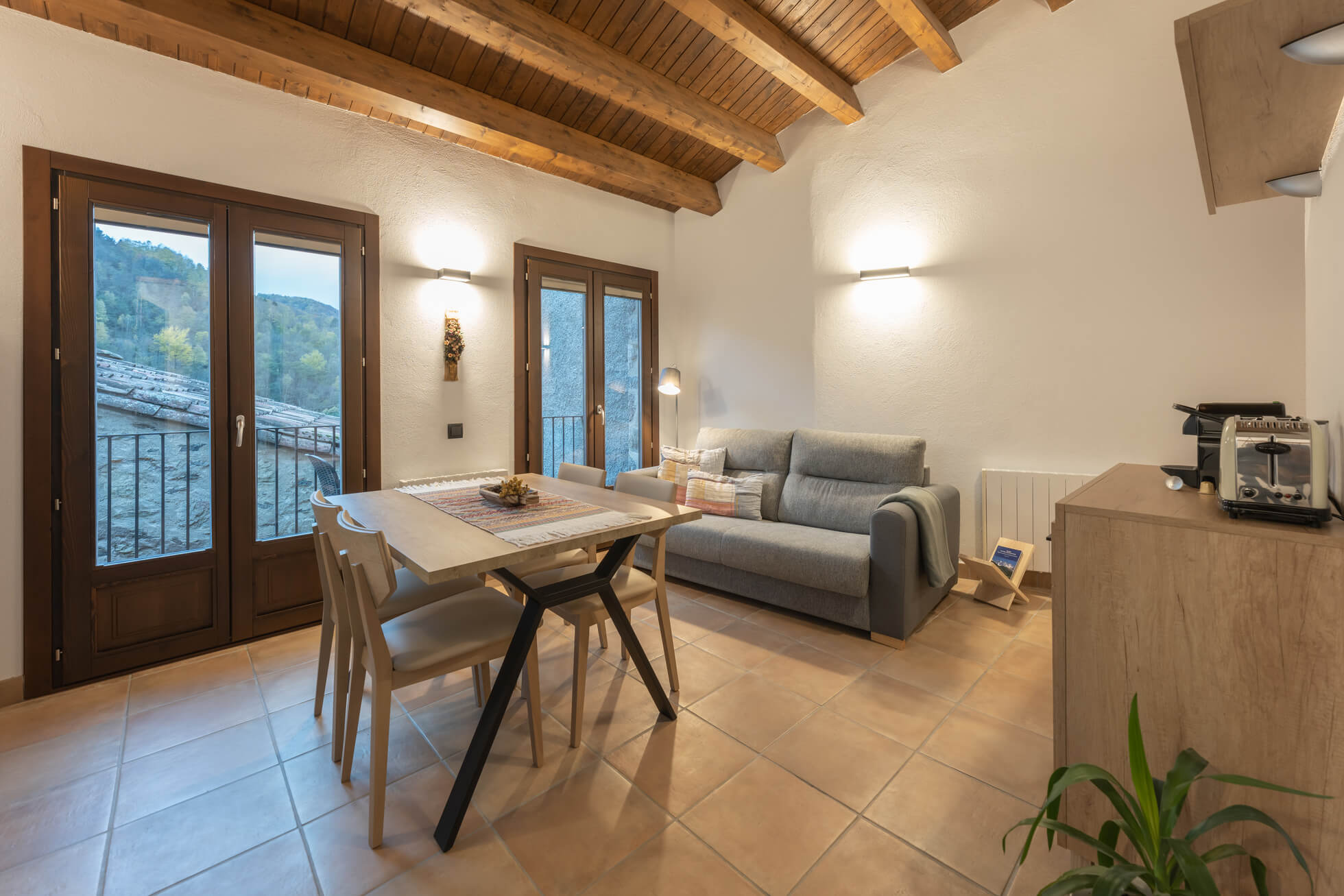 L’exterior conserva les característiques arquitectòniques de l’entorn, i l’interior amb una decoració rústica pròpia del pirineu.
